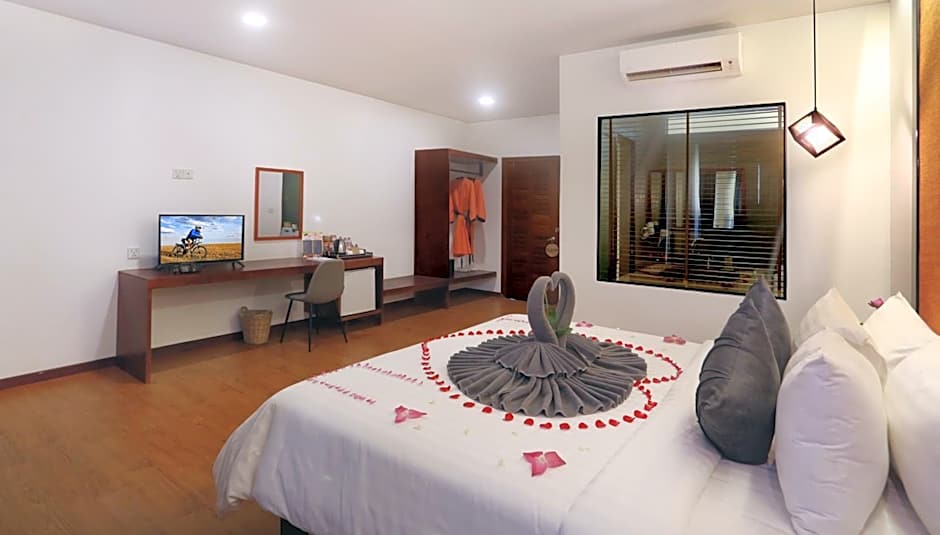 Featuring a private balcony with garden and pool views, spacious air-conditioned room come with tiled or wooden flooring, a safety box, writing desk, wardrobe, seating area, small fridge,tea/coffee maker, bathrobes and a TV are also included. The private bathroom offers shower facility, hairdryer and free toiletries. Benefits included :
